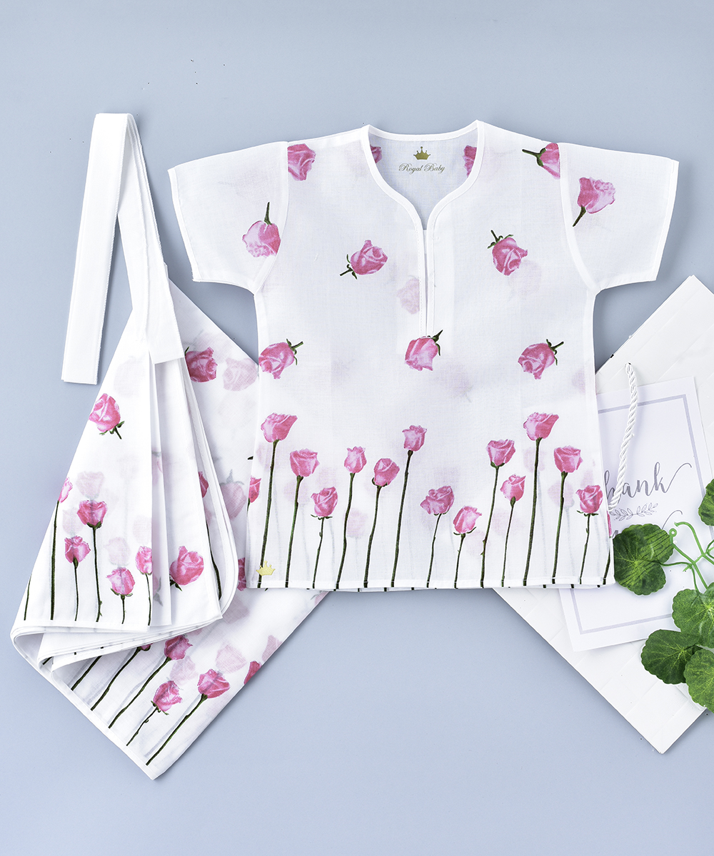 3 PCS jalabiya Wrapper and belt set  , Printed with beautiful Flower design suitable for girls. Made from 100% cambric print cotton light weight breathable they are ideal for every day use and will be soft on baby ‘s skin.