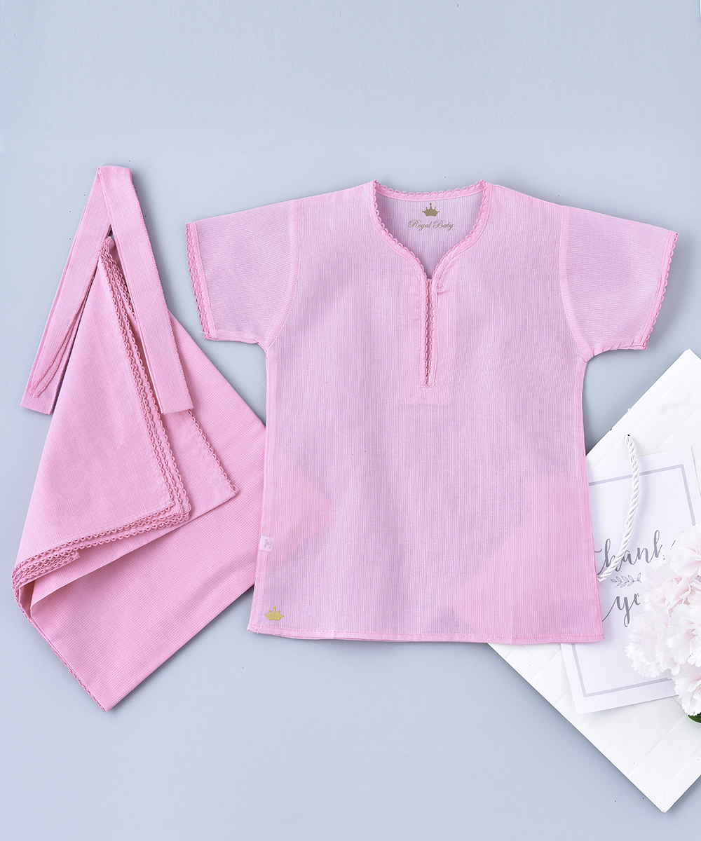 ROYAL BABY’S 3 piece jalabiya wrapper and belt.Are made up of 100 % cotton soft and thin cloth, breathable versatile and pre washed cloth. Finished with beautiful pikku design . used 100% swiss cotton color fabric .Ensures baby’s ultimate comfort at bed time and beyond.
