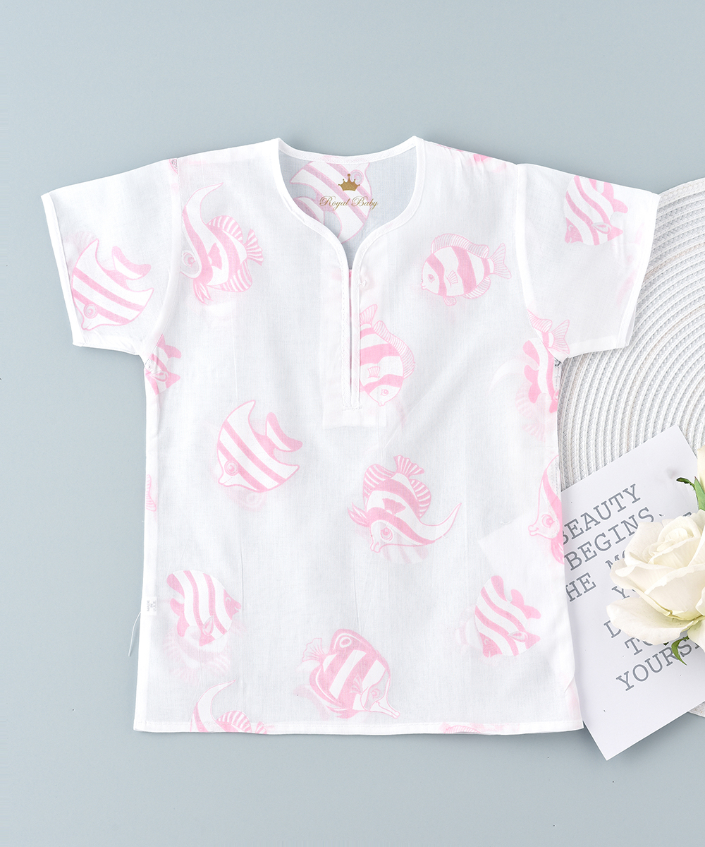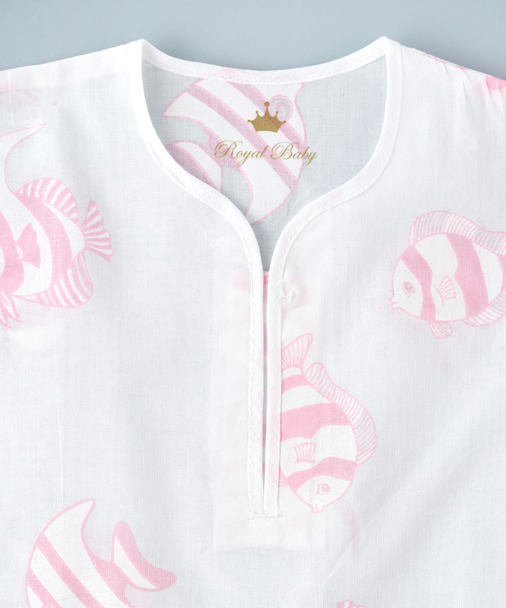 ROYAL  BABY ‘S  jalabiya a new  cotton rich fabric for babies. These are made up of 100% cambric print cotton, soft  thin and breathable high quality fabrics. printed with  beautiful fish design. ensures babies ultimate comfort  for every day use