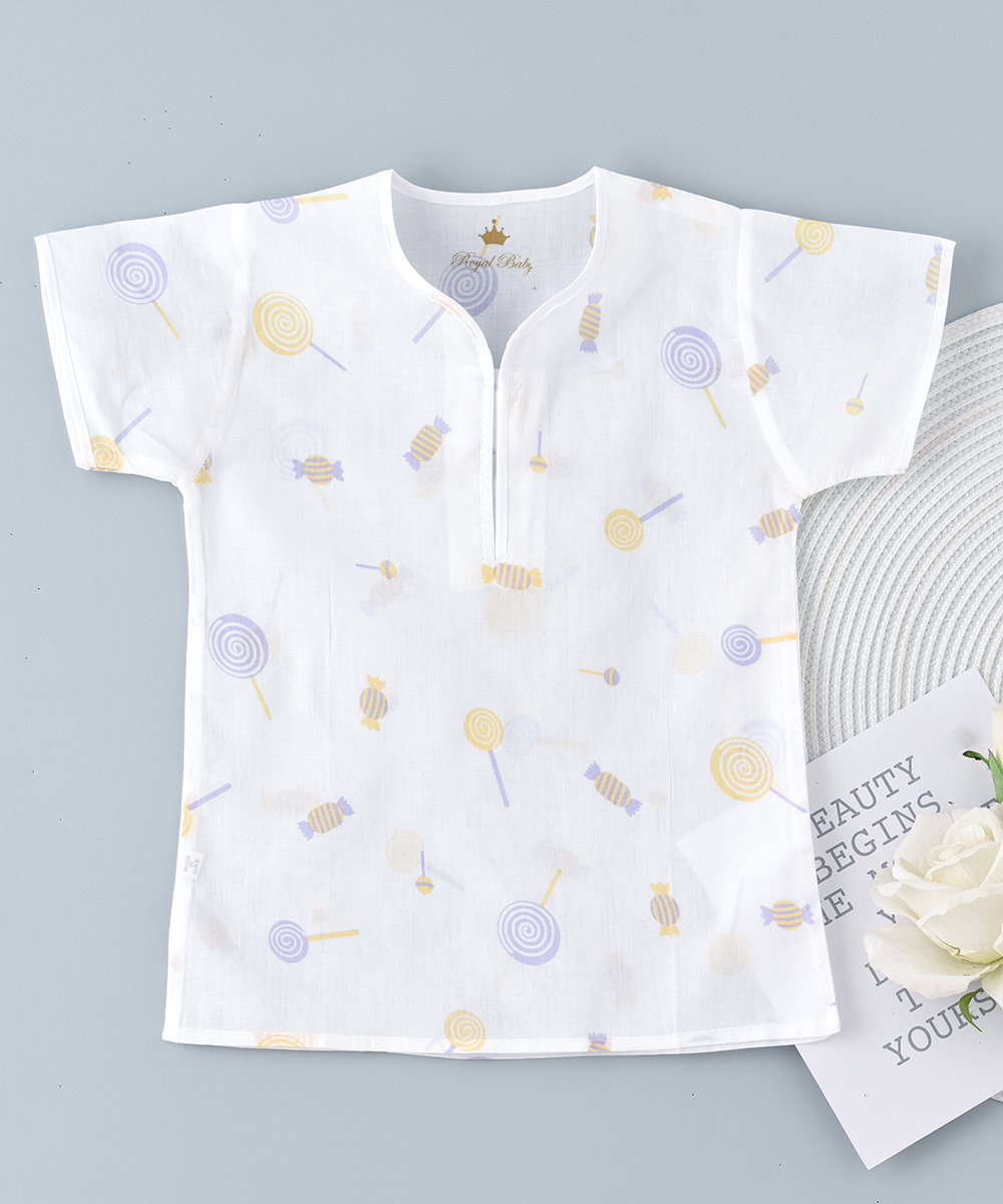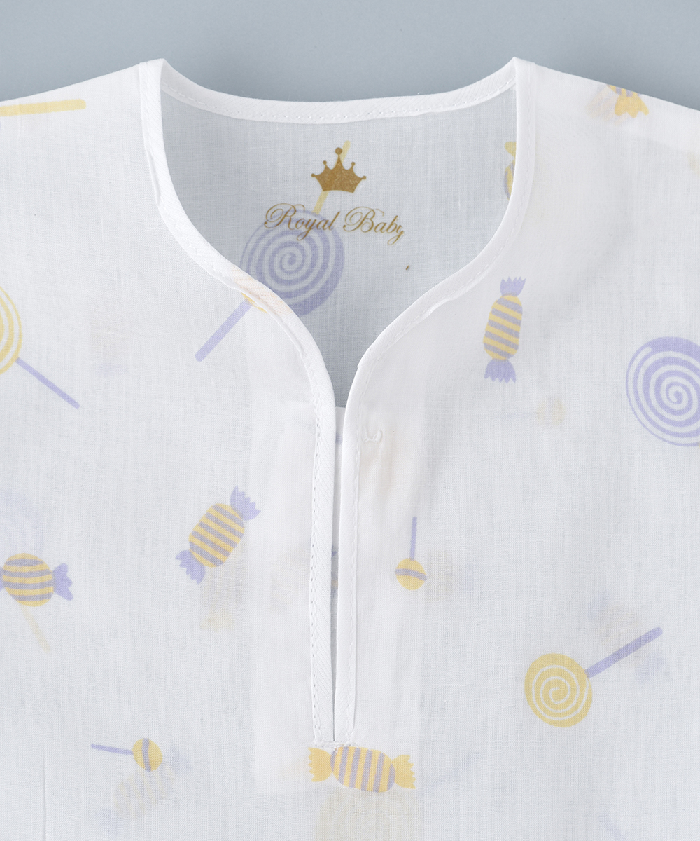 ROYAL  BABY ‘S  jalabiya a new  cotton rich fabric for babies. These are made up of 100% cambric print cotton  soft , thin and breathable high quality fabrics. Printed with beautiful candy design. ensures babies ultimate comfort  for everyday use