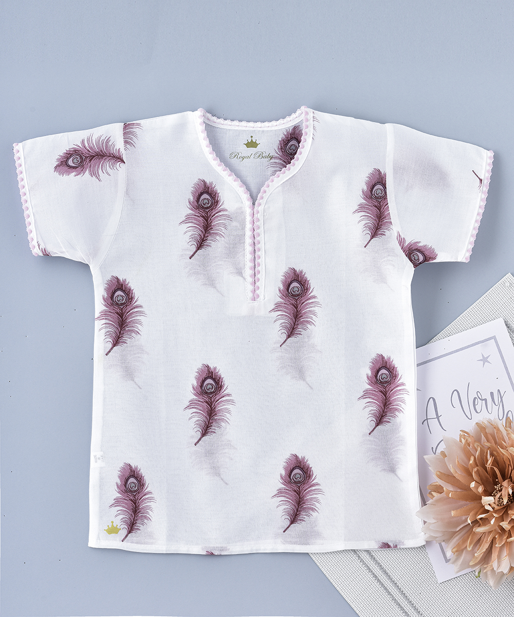 ROYAL BABY ‘S jalabiya a new cotton rich fabric for babies. These are made up of 100% cambric print cotton , soft thin breathable high quality fabrics . printed with beautiful feather design ensures babies ultimate comfort for every day use.
