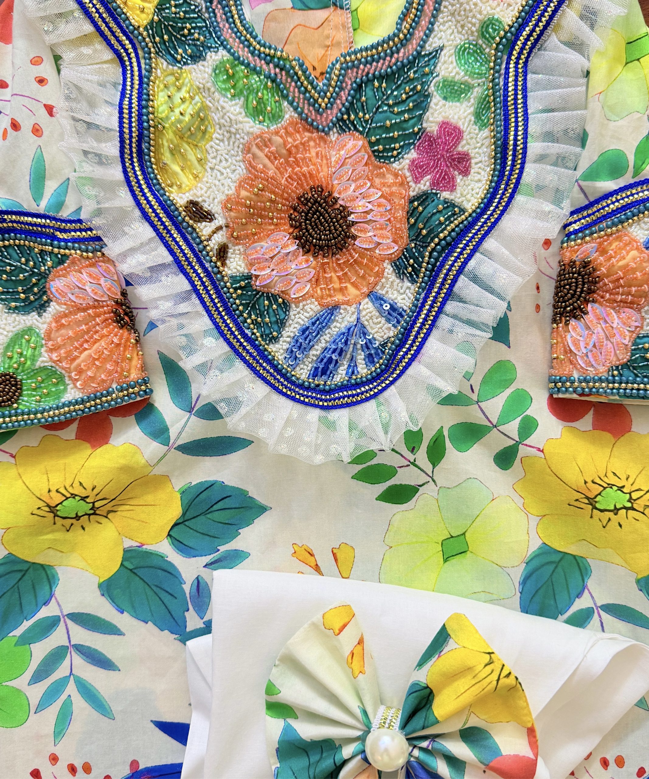 JALABIYA WITH AMAZINGLY BEAUTIFUL HANDWORK WITH SIRWAL AND HAIRCLIP .MADE WITH LOVE IN UAE