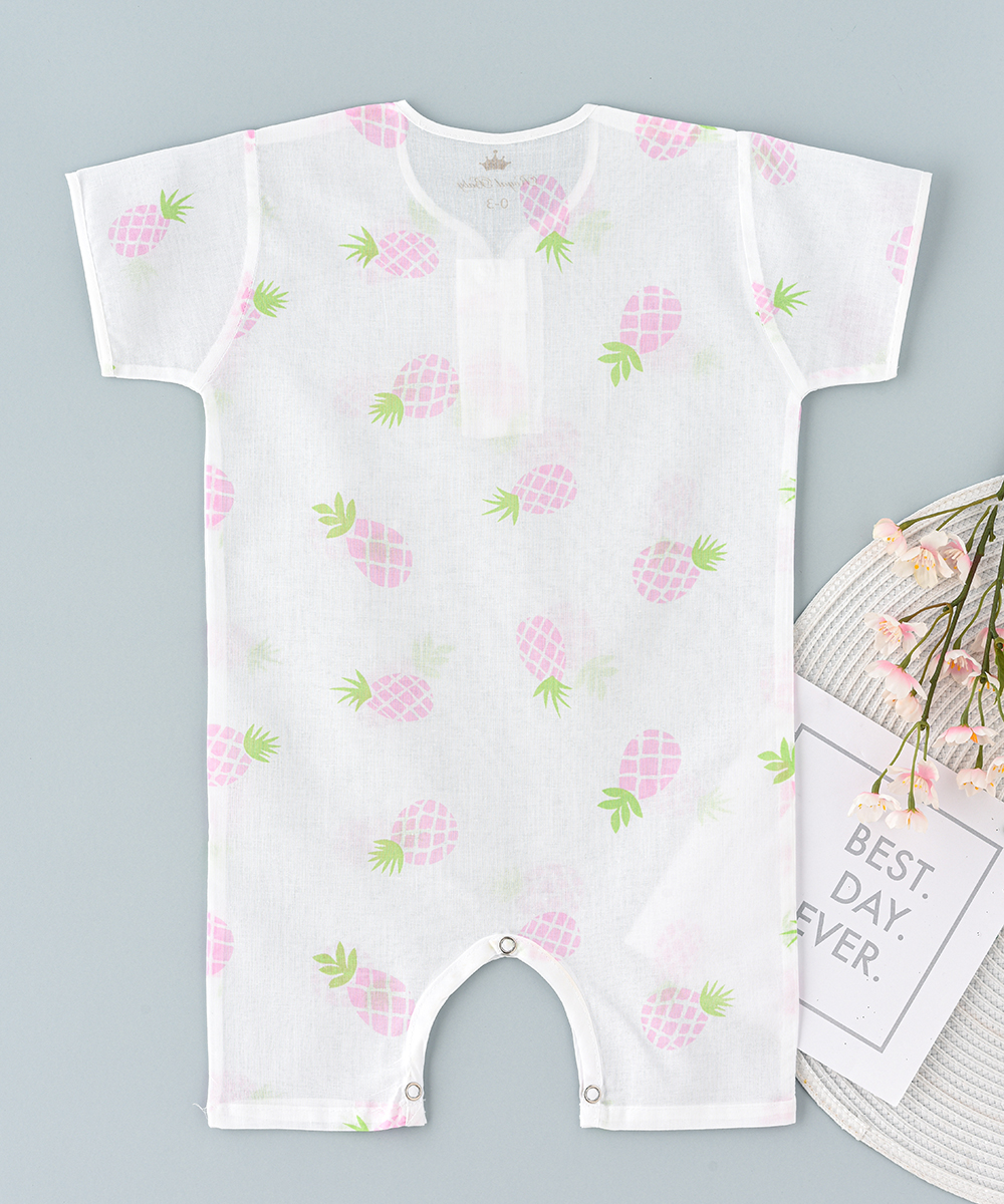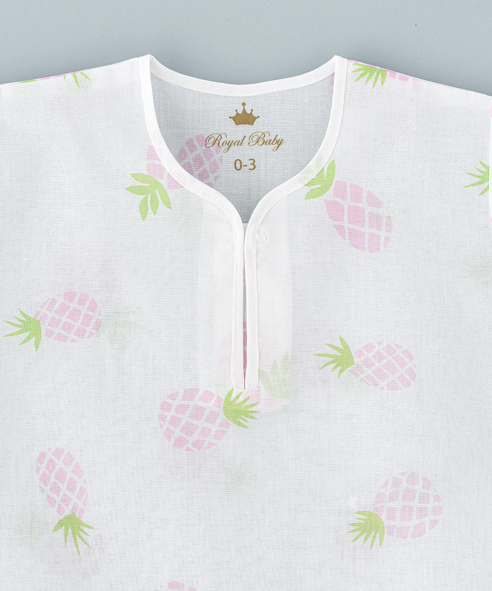 ROYAL BABY ‘ S rompers are made up of 100 % cambric printed  cotton soft and thin cloth breathable versatile and pre washed cloth. Printed with beautiful pineapple design. Ensures baby’s ultimate comfort at bed time and beyond