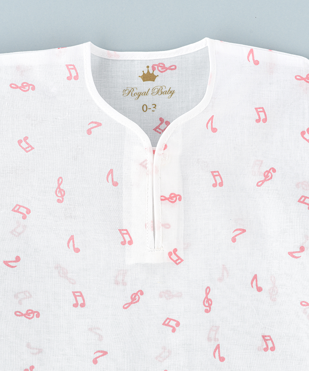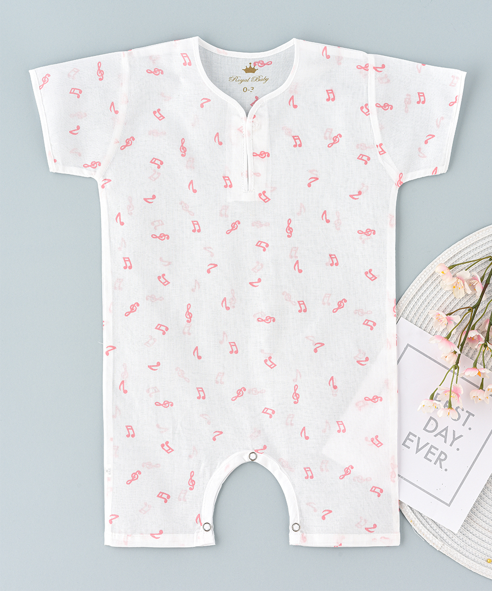 ROYAL BABY ‘ S rompers are made up of 100 % cambric printed cotton soft and thin cloth breathable versatile and pre washed cloth. Printed with beautiful music design. Ensures baby’s ultimate comfort at bed time and beyond