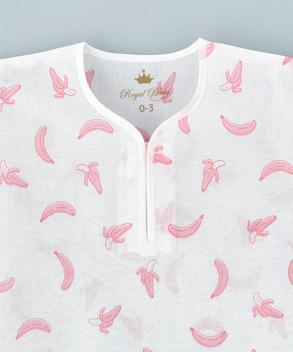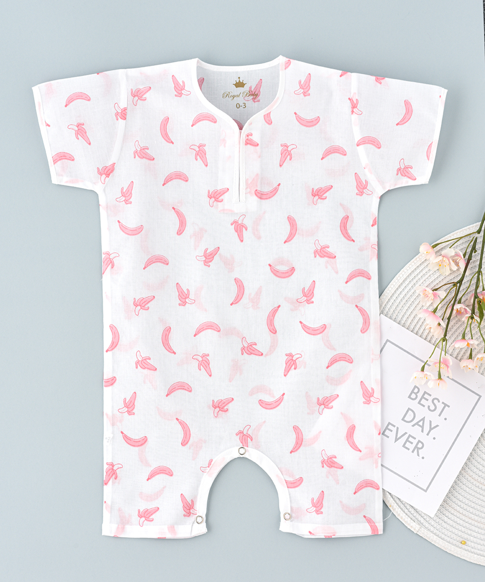ROYAL BABY ‘ S rompers are made up of 100 % cambric printed cotton soft and thin cloth breathable versatile and pre washed cloth. Printed with beautiful banana design. Ensures baby’s ultimate comfort at bed time and beyond