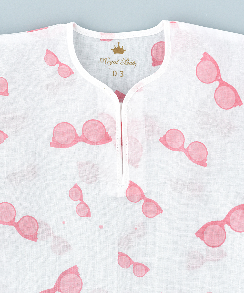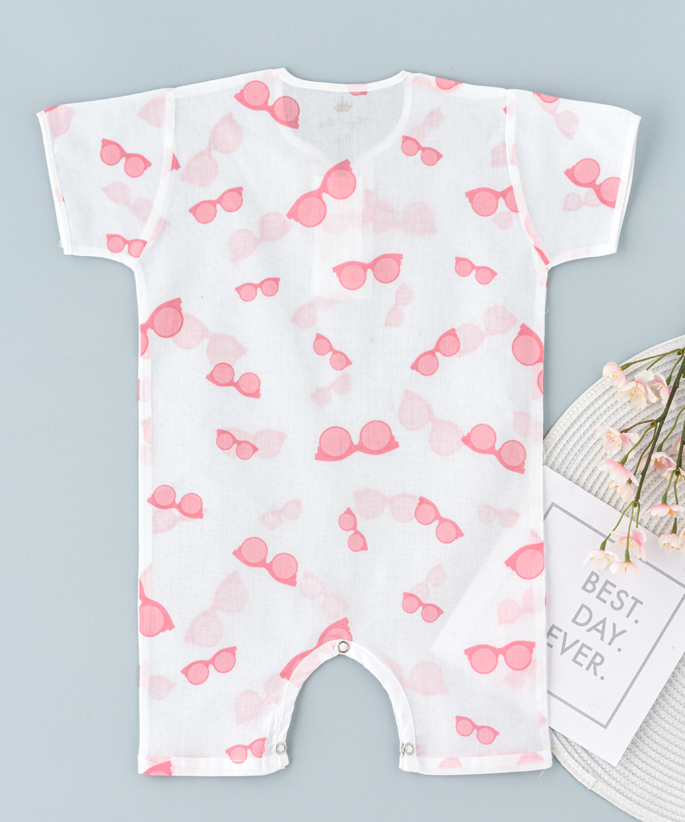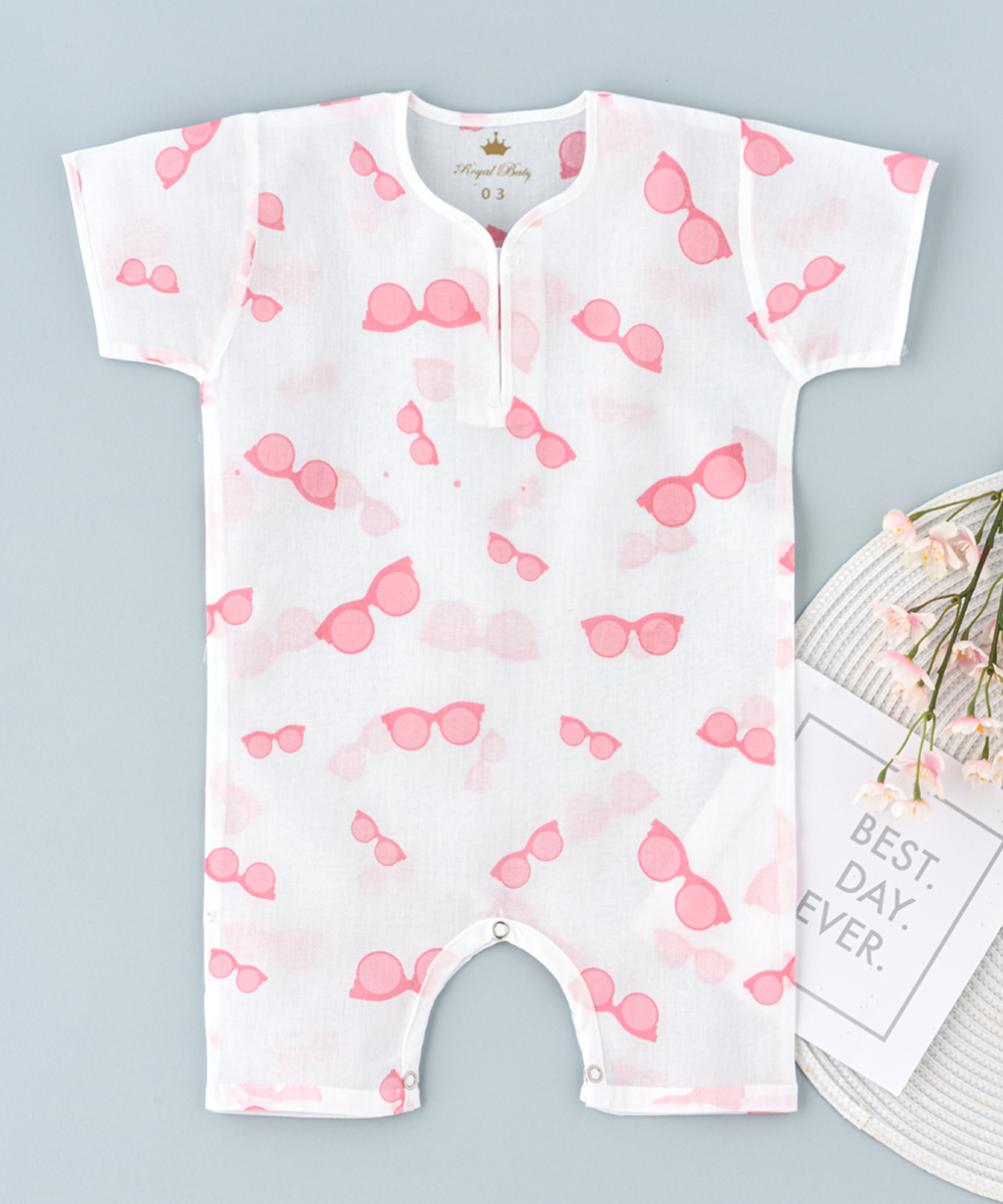 ROYAL BABY ‘ S rompers are made up of 100 % cambric printed cotton soft and thin cloth breathable versatile and pre washed cloth. Printed with beautiful sun glass design. Ensures baby’s ultimate comfort at bed time and beyond